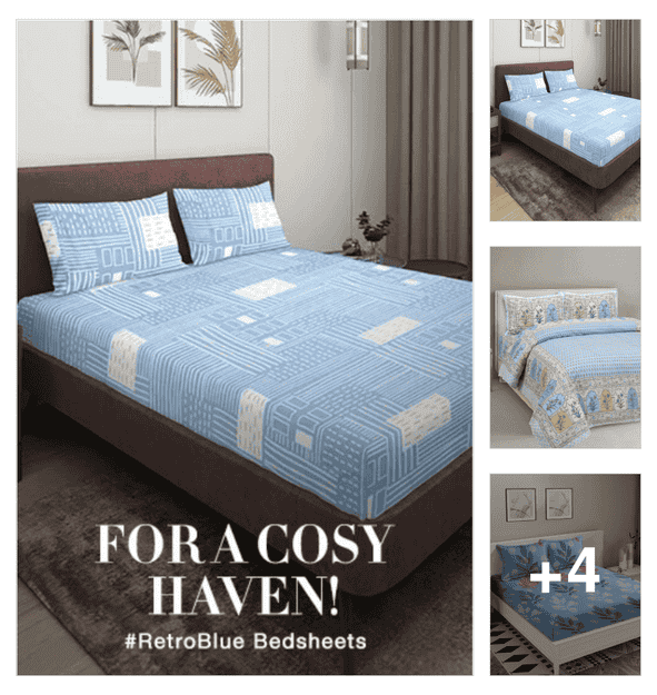 uniqchoice blue color 100% cotton jaipuri traditonal double bedsheet with 2 pillow cover