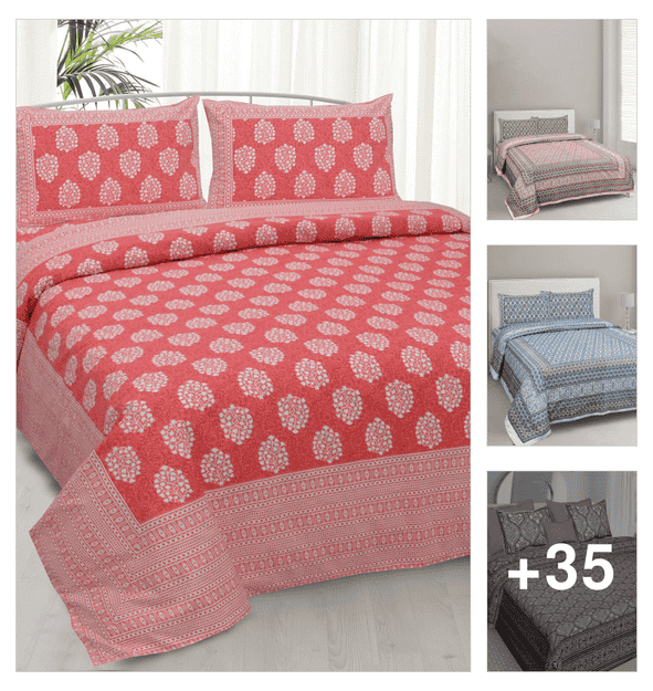 printed double bedsheet with 2 pillow cover