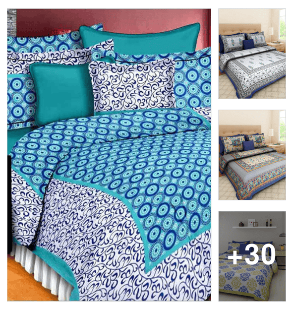 printed double bedsheet with 2 pillow cover