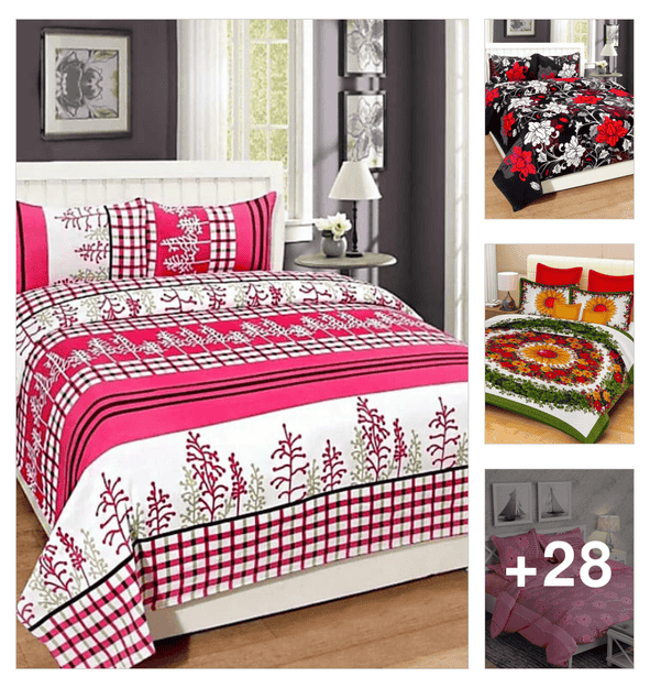 uniqchoice pink color 100% cotton jaipuri traditonal double bedsheet with 2 pillow cover