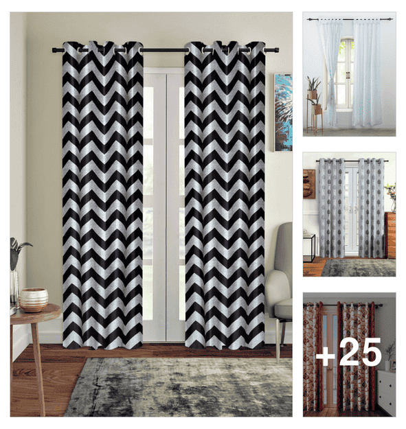 home sizzler zigzag black & grey polyester semi-transparent curtains