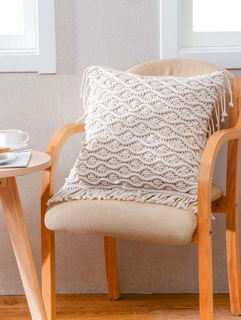 indhome life pure cotton 16x16inches reversible decorative tassels patch work cushion