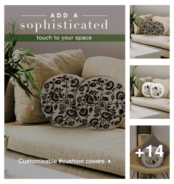 digitally printed cushion cover with lines and leaf design