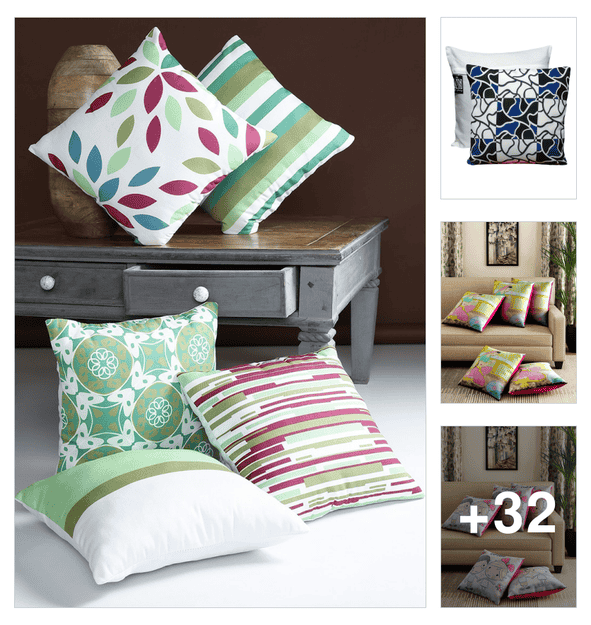 ciearo vintage cushion cover set of 5 pcs hand made cotton 18"/18" inches cotton