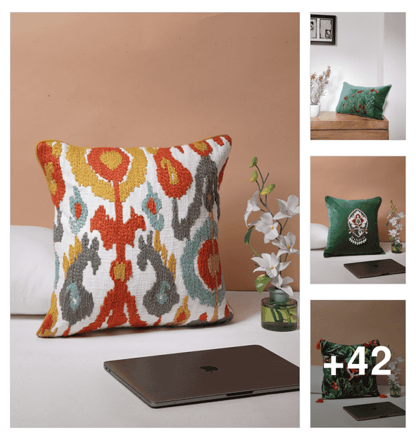 ciearo vintage cushion cover set of 5 pcs hand made cotton 18"/18" inches cotton