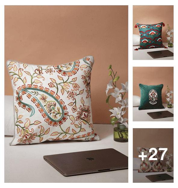 ciearo vintage cushion cover set of 5 pcs hand made cotton 18"/18" inches cotton