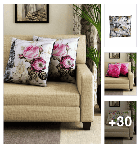 ambbi collection digitally printed cushion cover bunch of roses & leaves set of 2
