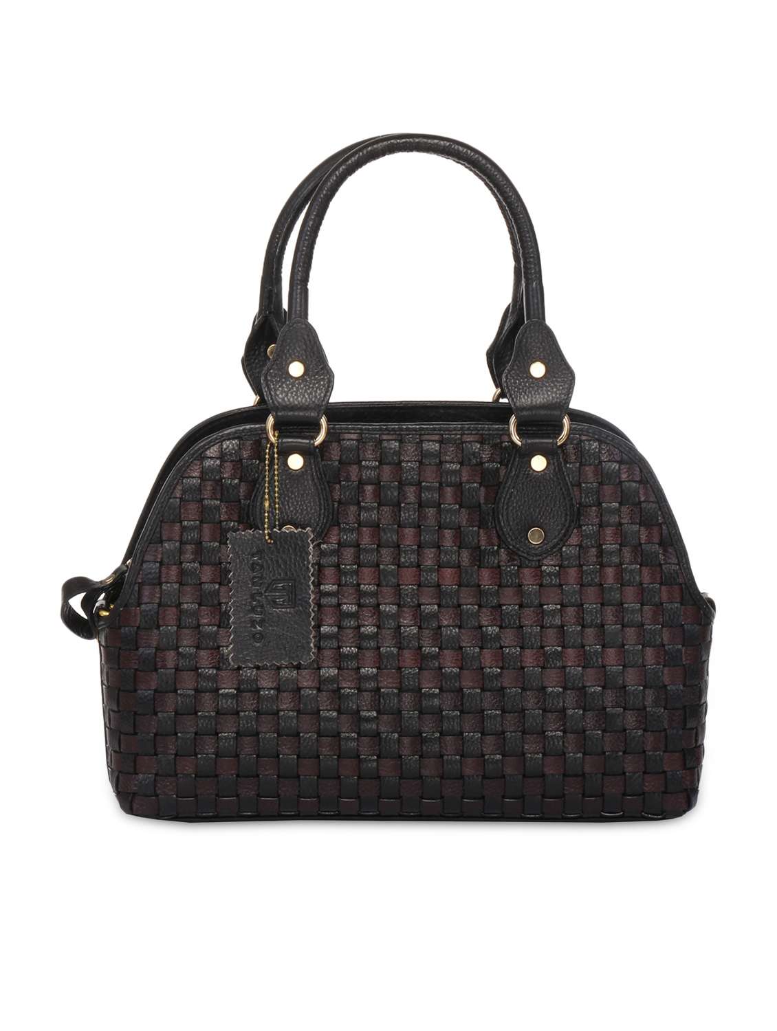 black and brown textured leather handbag