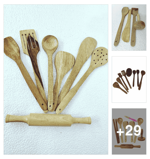 buzykart� wooden spoon set of 11 pcs/ wooden spatula, ladle & kitchen tools set