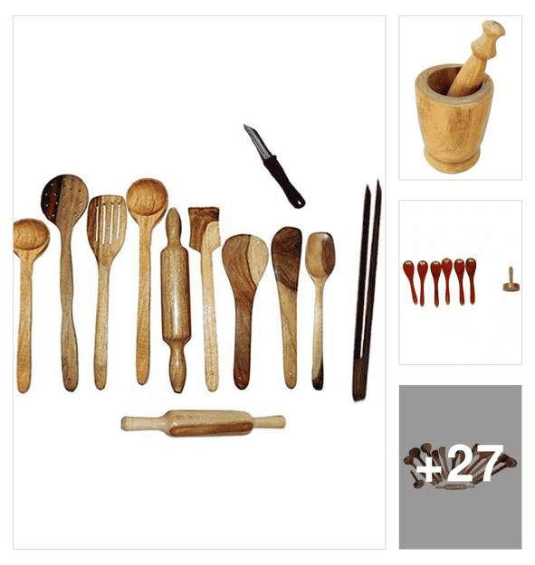 buzykart� wooden spoon set of 11 pcs/ wooden spatula, ladle & kitchen tools set