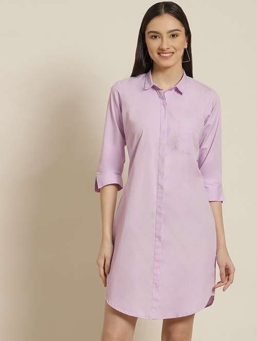 Women Lavender Solid Pure Cotton Regular Fit Formal Dress