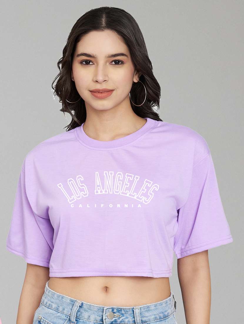 women lavender typographic printed crop t-shirt