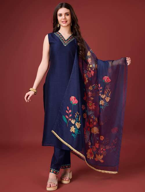 - Browse through the latest range of ethnic sets for women with tailored sleeve designs with embroidered works.