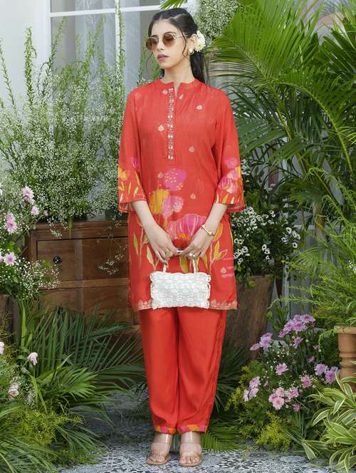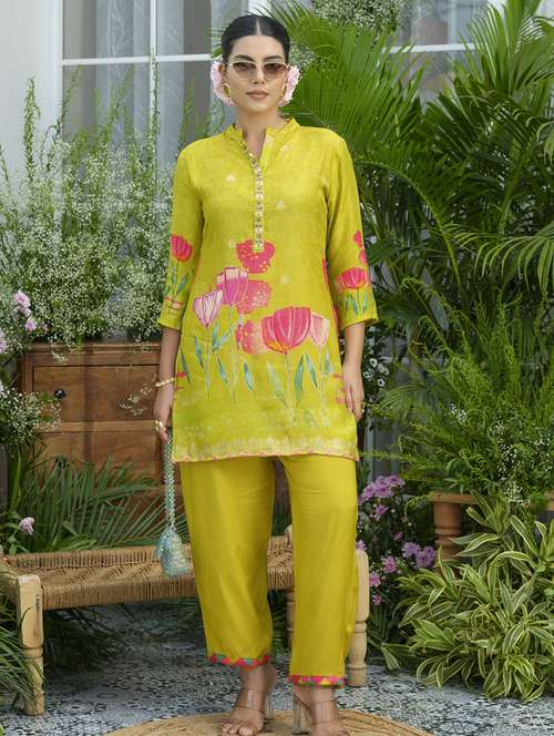 - » women floral three quarter sleeve ethnic co-ord set