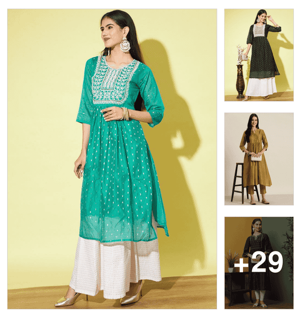 Embroidered A-line Kurtas