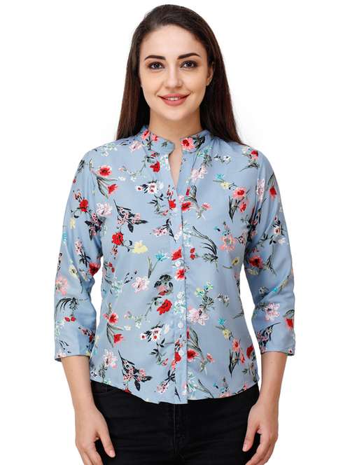- » mandarin neck printed shirt