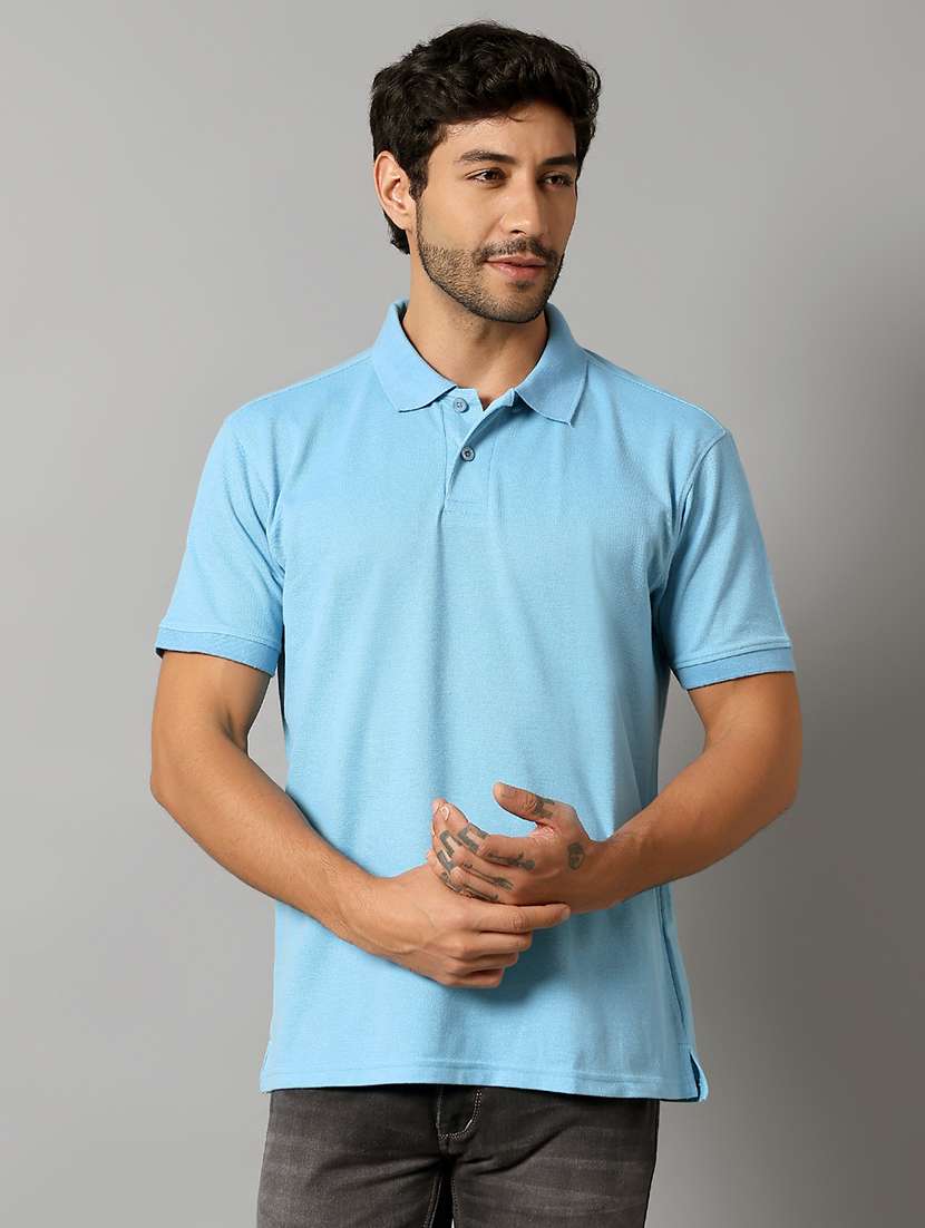 - » men light blue printed short sleeve polo t-shirt