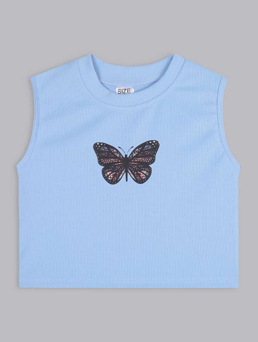- » girls round neck graphic printed top
