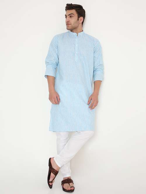 - » men striped mandarin neck long kurta