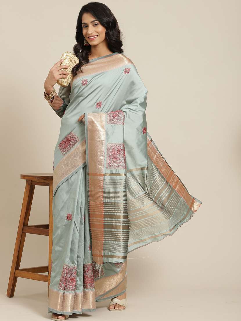 Arriva fab Women's Soft Cotton silk With thread Embroidery Saree with blouse