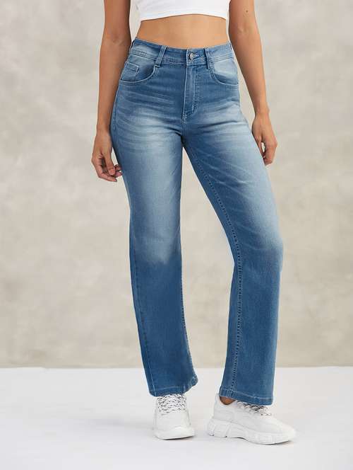 - » women solid high rise straight jeans