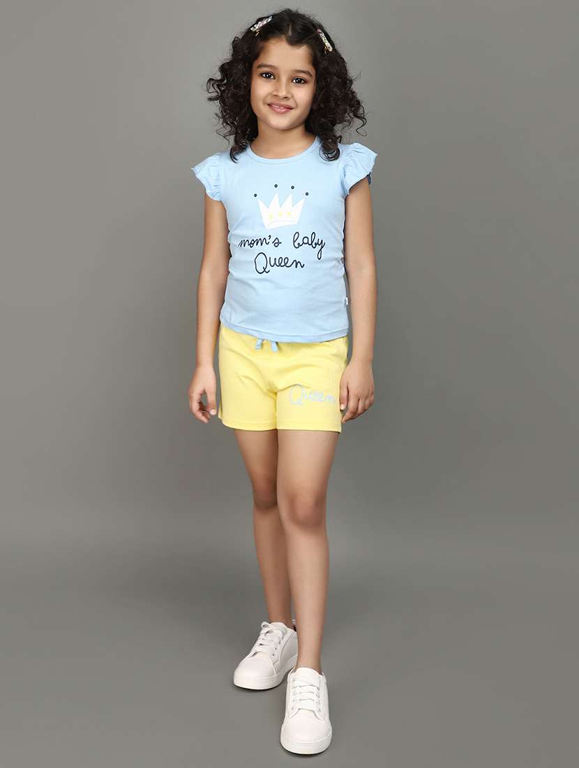 girls round neck printed shorts set