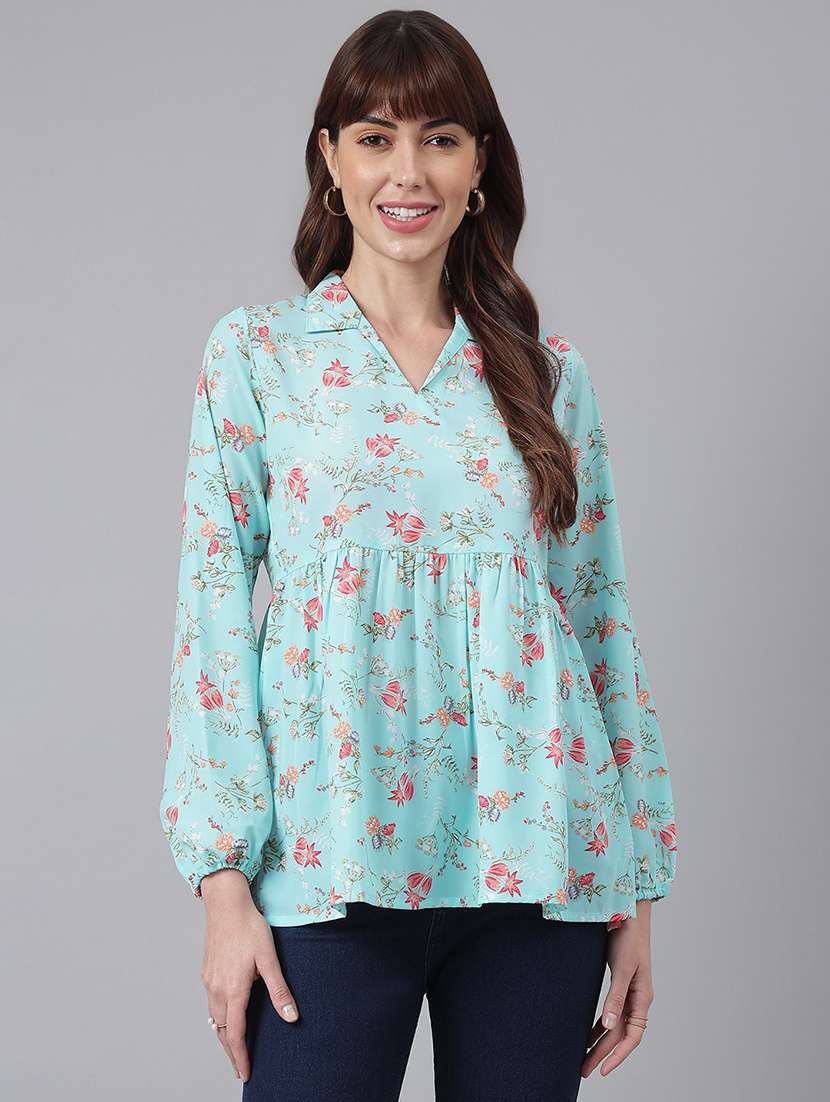 - » light blue floral printed peplum top