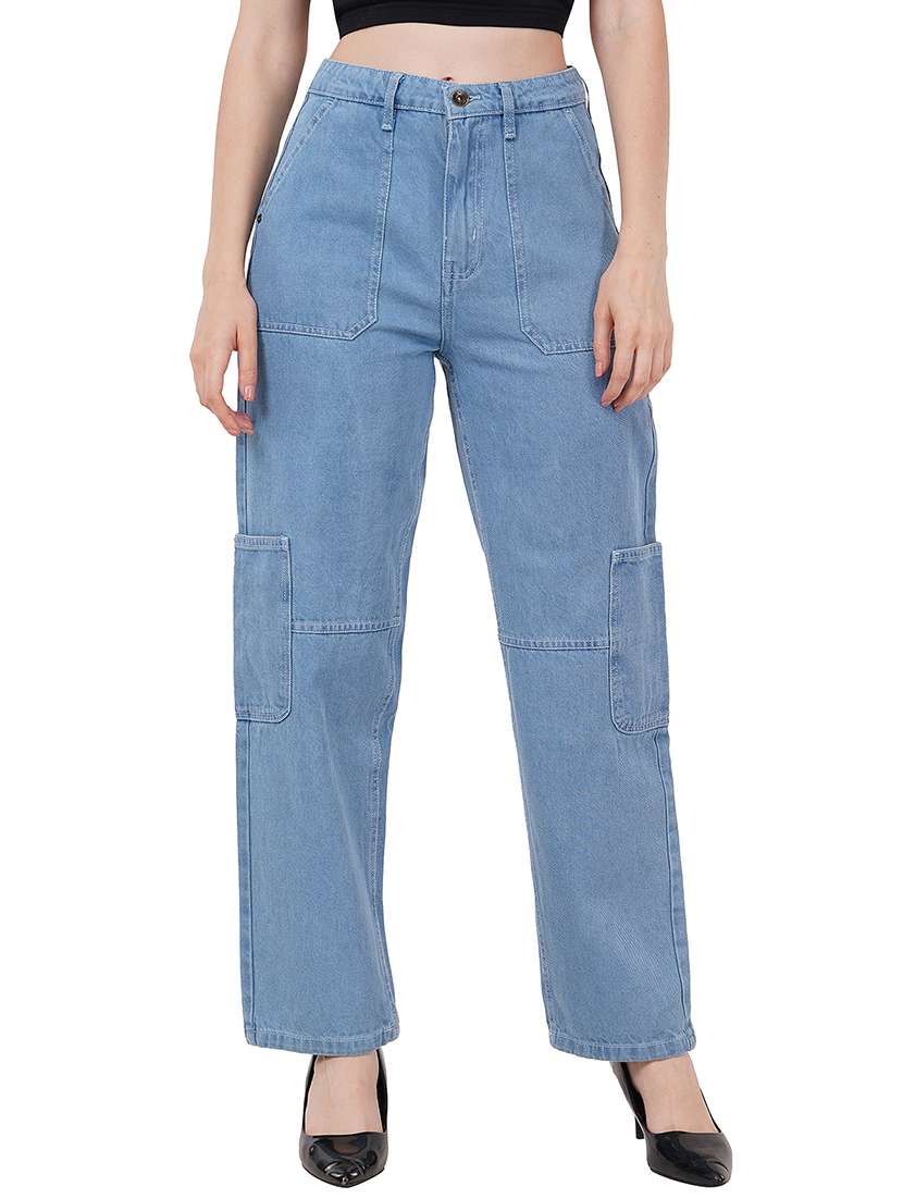 - » women solid high rise denim cargo