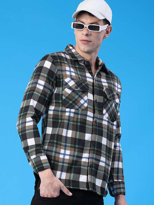 - » men checkered long sleeve regualr fit casual shirt