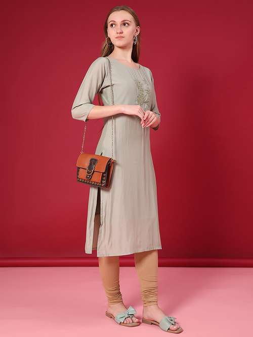 - Grab this beautiful kurta made up of cotton fabric featuring round neck designs.