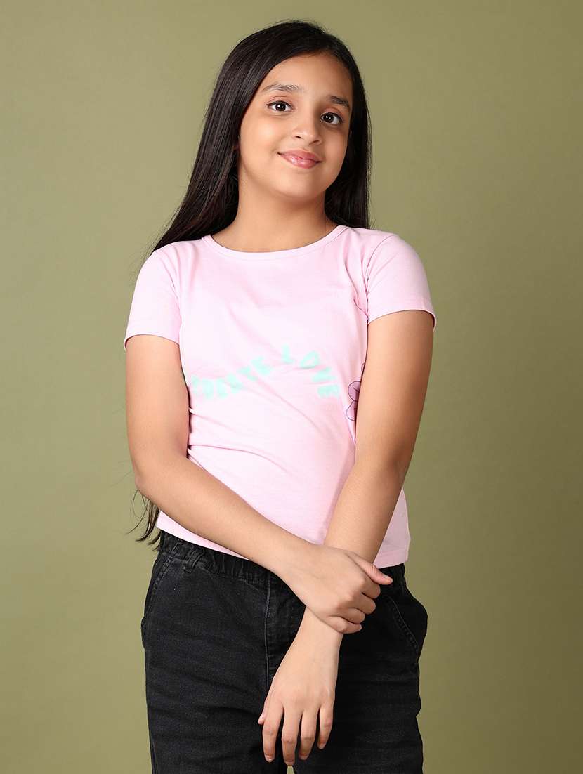 girls front print short sleeves tee