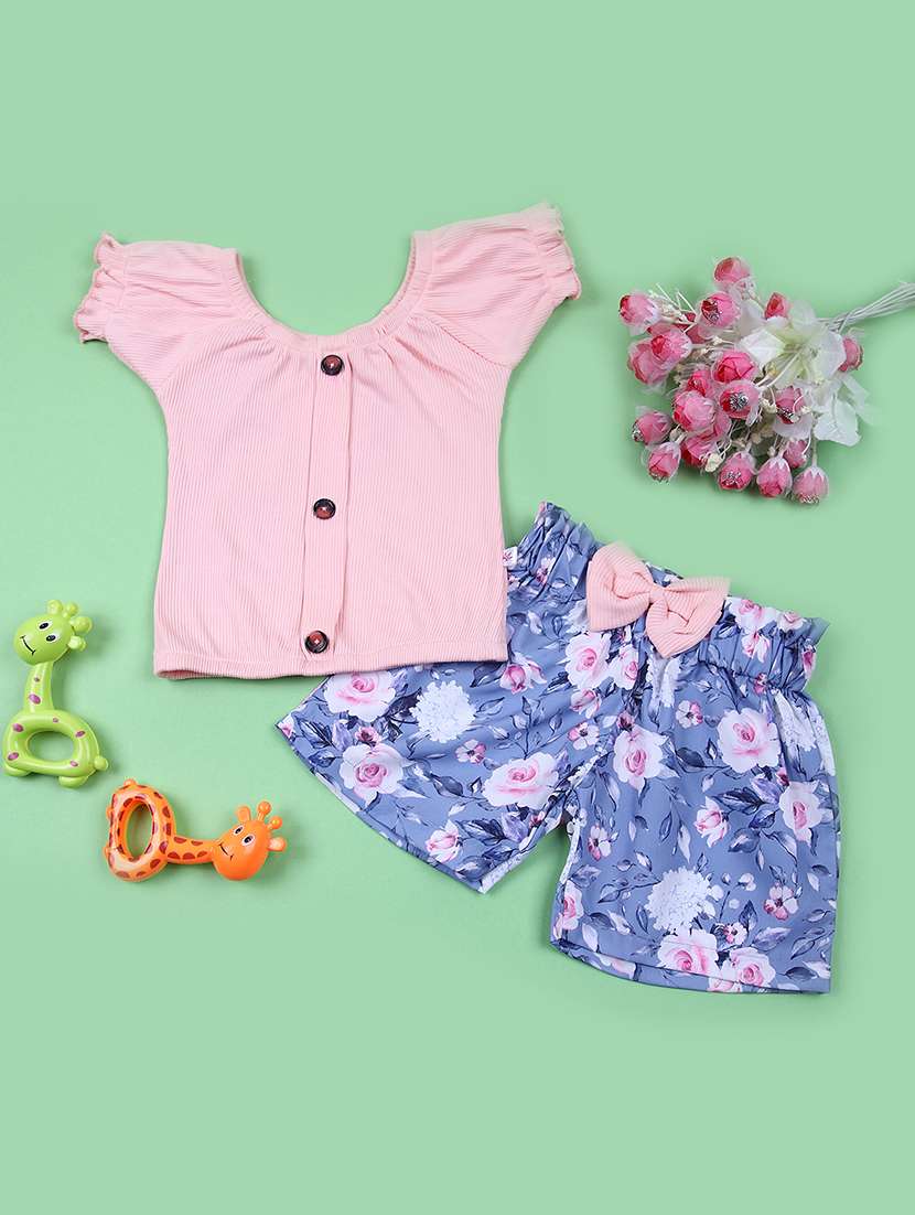 pink cotton shorts sets twin & jump suit
