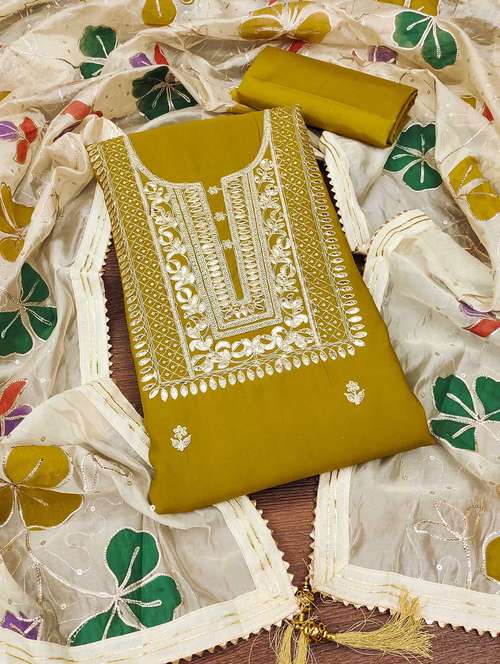 - Look ultra gorgeous in unstitched suits from Manvaa and grab these beautiful suits in lime colour.