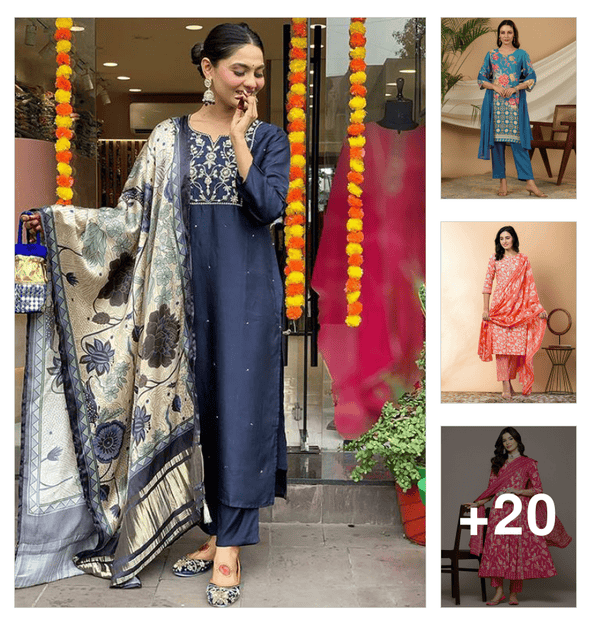 women three quarter sleeve kurta pant with dupatta set