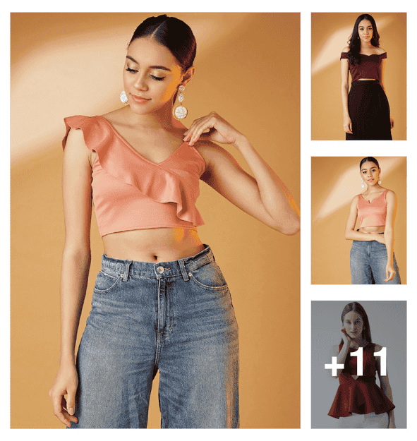 women black solid v neck crop top