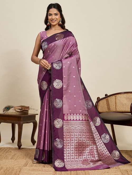 Magenta Soft silk Flower Design With Gold And Silver Banarasi zari combination saree