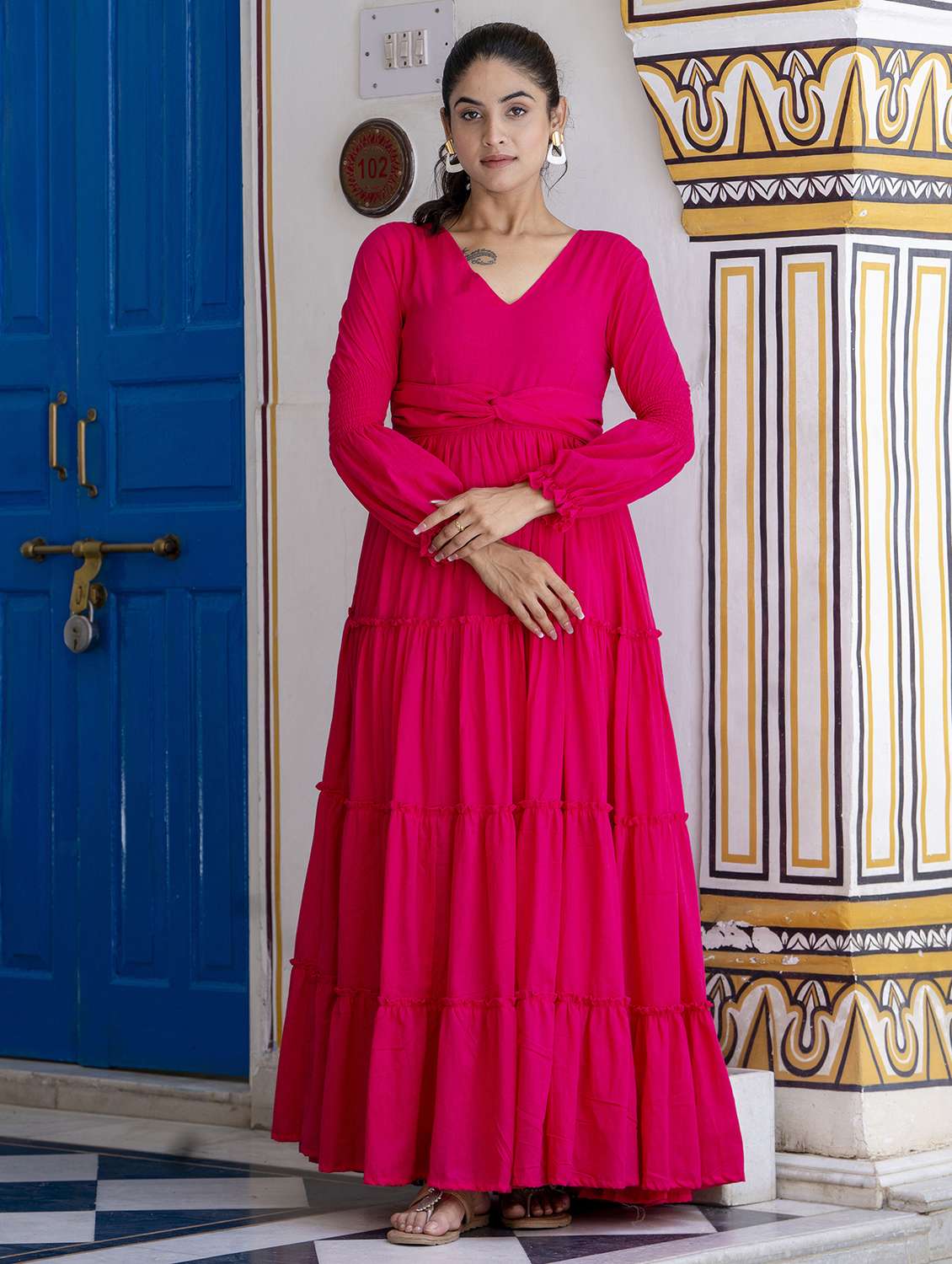 - Look and feel your best with the fresh collection of pink colorful ethnic dresses with trending diverse designs and silhouettes to choose from.