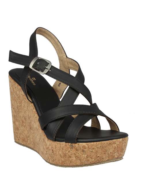 - Grab your wedges in leatherette material with buckle closures.