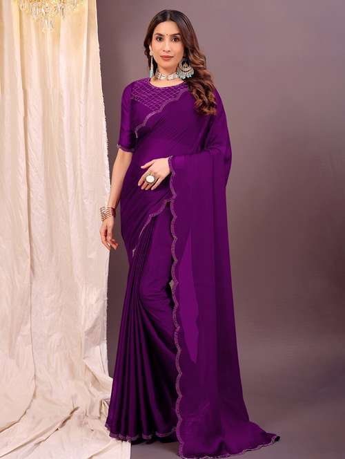Embllished Stone Work scalloped pallu Desgine saree For Party And Festive Wear