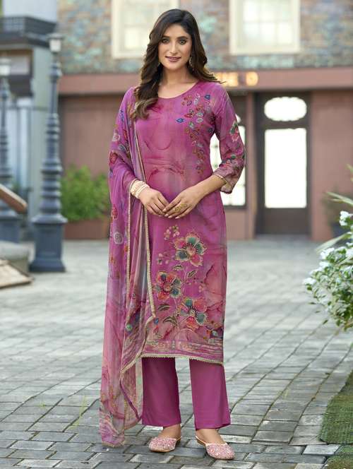 - Find gorgeous sets of ethnic wears in trending designs in purple colors suitable for festive wear of occasions.