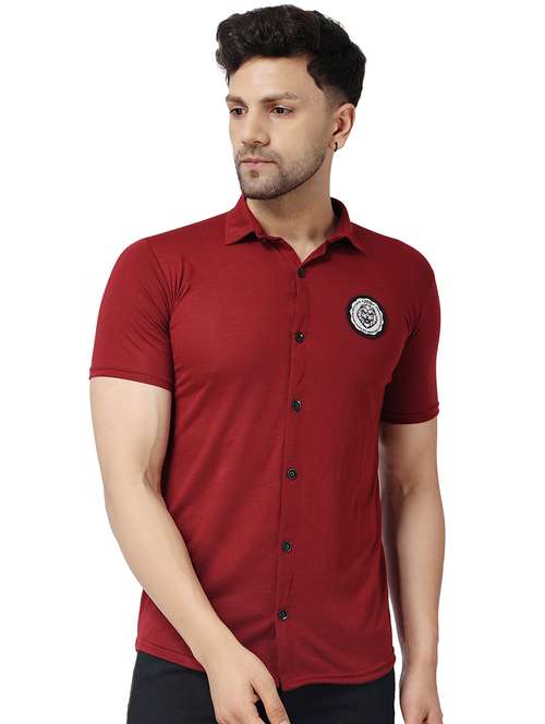 - » solid maroon cotton blend casual shirt