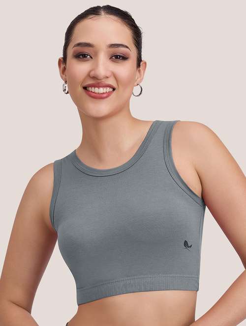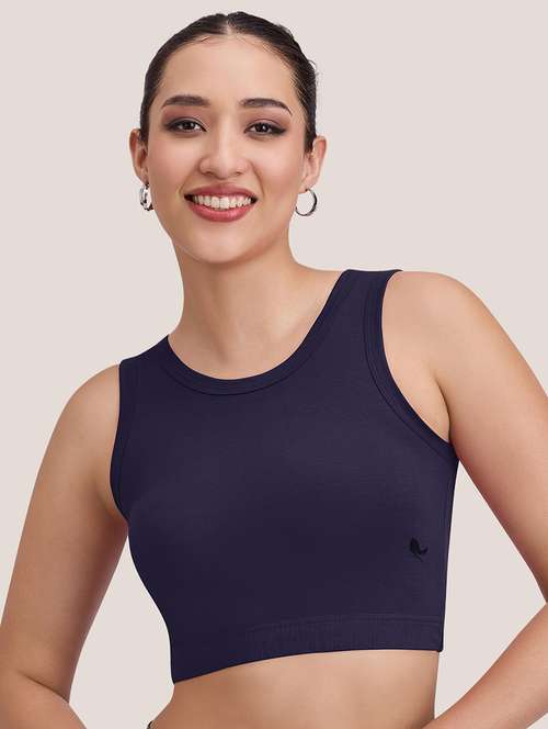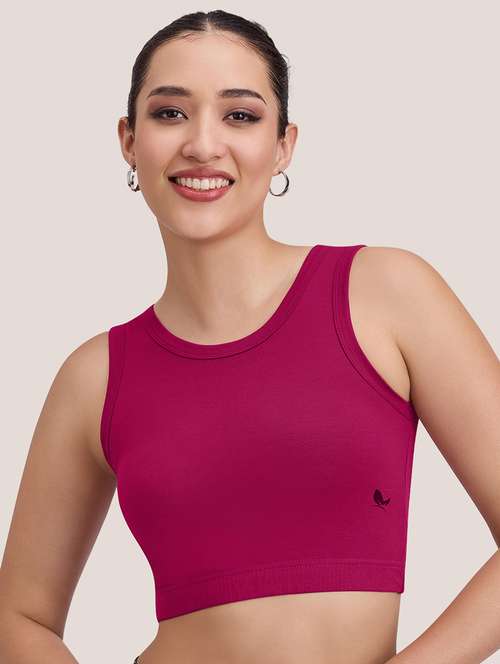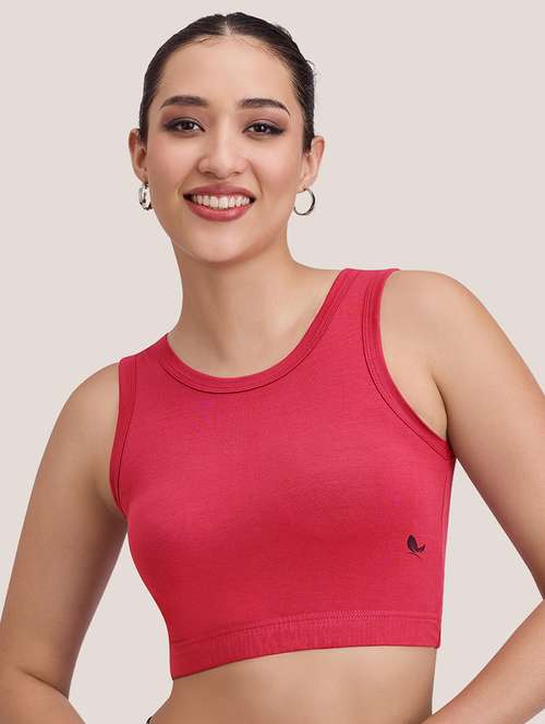 POOJA RAGENEE Train in comfort and confidence with our Solid Non-Padded Sports Bra designed for effortless support and a sleek athletic look. Featuring a high-neck silhouette, this bra offers enhanced coverage and a modern sporty style. The wire-free, non-padded design provides natural shape and lightweight comfort without bulk, making it perfect for workouts, yoga, walking, and daily active wear. Crafted from soft, stretchable, and breathable fabric, it allows free movement while keeping you cool and dry. The wide under band offers secure hold and gentle support, preventing shifting during activity. Its solid color and seamless finish create a clean, flattering fit that pairs easily with leggings, joggers, or shorts. Whether you’re training hard or relaxing post-workout, this sports bra delivers flexibility, comfort, and style in one essential activewear piece.