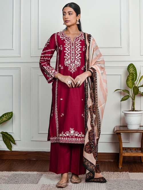 - Find gorgeous sets of ethnic wears in trending designs in maroon colors suitable for festive wear of occasions.