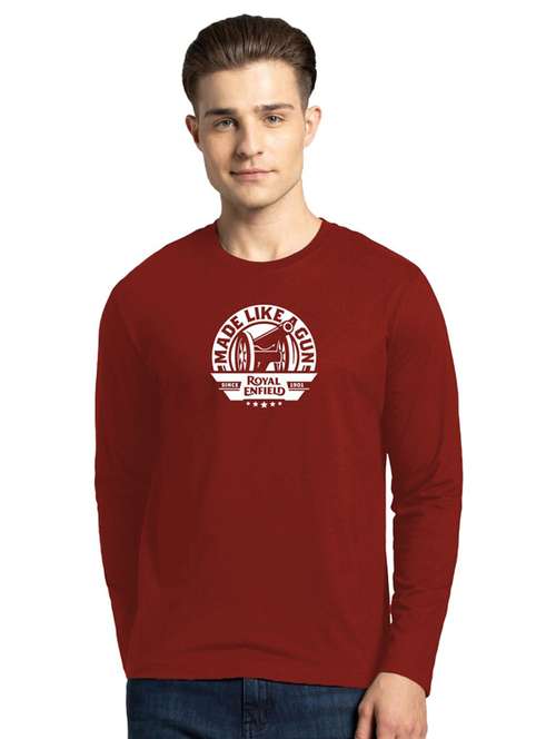 maroon cotton chest print t-shirt