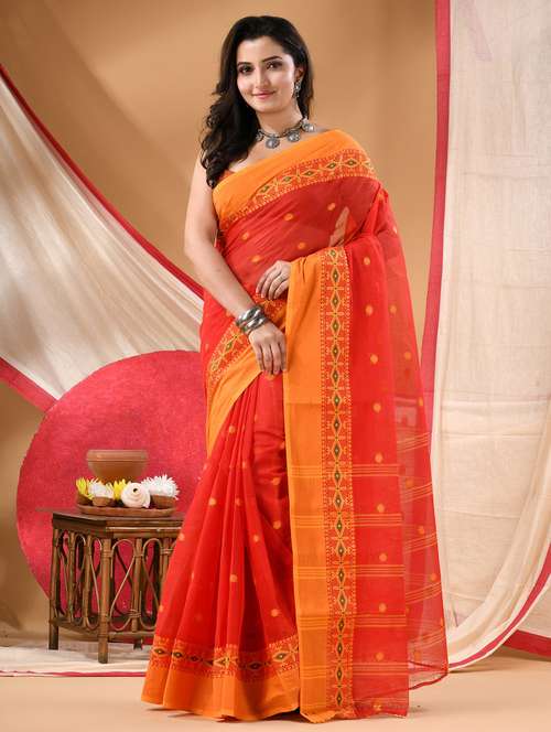 Embrace timeless charm with this Pure Cotton Tant Saree from Bengal, crafted with soft, breathable fabric for all-day comfort. Blending traditional handloom artistry with modern design, it is perfect for daily wear, festive occasions, or weddings. Versatile and elegant, this saree celebrates Indian heritage while keeping you stylish and comfortable in every drape.