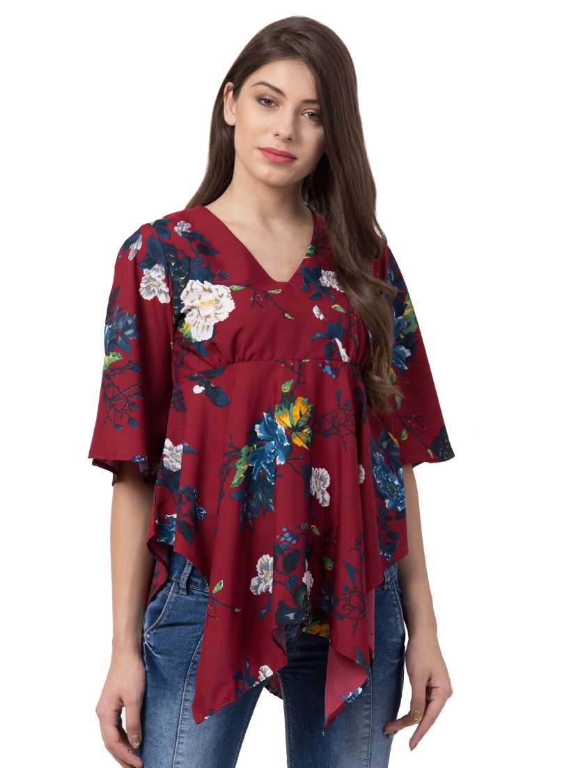 v neck floral asymmetric top