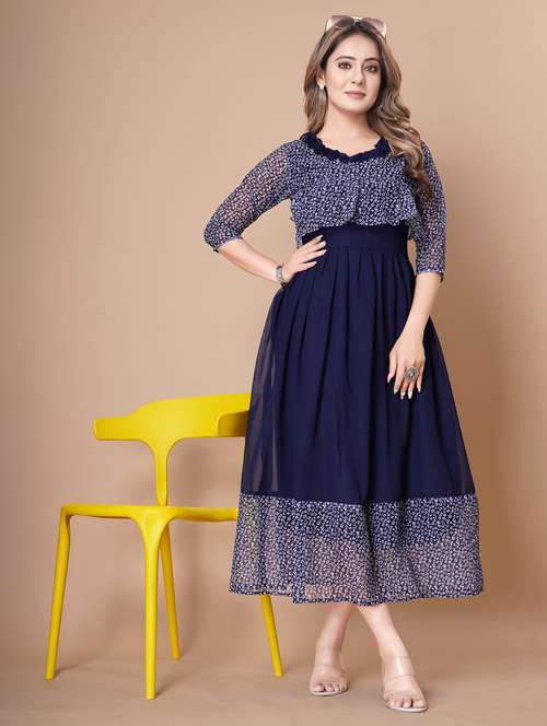 - Dress up in a soothing pattern and don this dress made of georgette material.