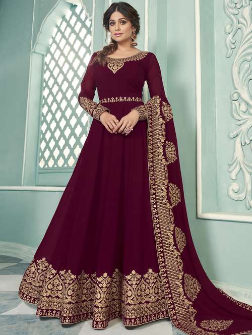embroidered semi-stitched suit - 17925556 - Very Small Image - 1