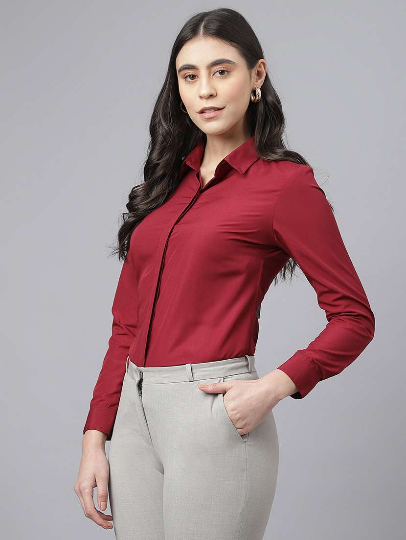 women solid collared long sleeve shirt - 22038402 -  Standard Image - 1 women solid collared long sleeve shirt - 22038402 -  Zoom Image - 1