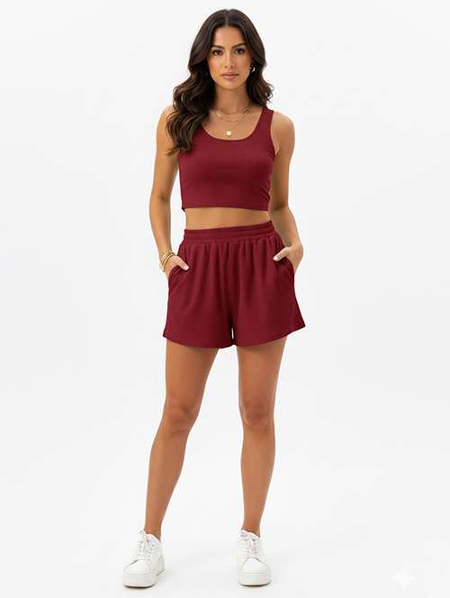 Stay effortlessly stylish and comfortable co-ords Set, a two-piece activewear designed for both performance and leisure. Featuring a sleeveless crop top paired with Shorts, this set is perfect for yoga, sports, or casual outings. Made from Premium Ajanta fabric, it offers a soft feel, breathability, and a flattering fit. Available in two stunning colors, this full-stitched co-ord set is your go-to for a chic athleisure look.